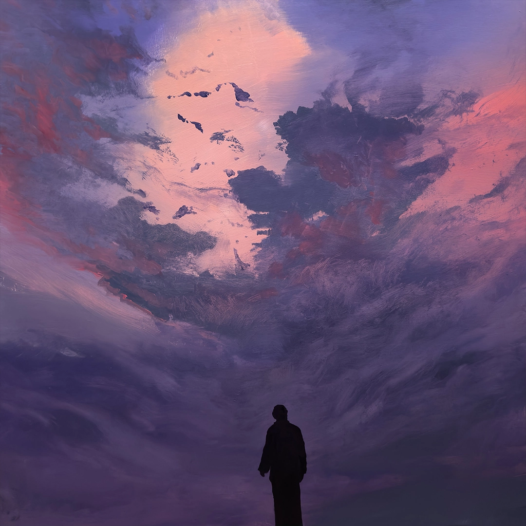 The exhibition is designed with striking simplicity. Thirty to forty of Penezic’s oil paintings on wood panels will line the gallery walls—each hung at the same height and with equal spacing—inviting the eye to follow them as though they were part of one continuous narrative. In the center of the gallery, two video works will be projected on freestanding walls. Like the paintings, they are meant to be experienced without beginning or end, their imagery unfolding like visual meditations.